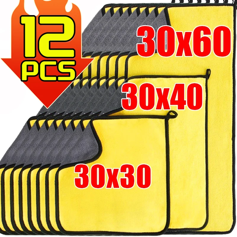 1-12PCS Microfiber Cleaning Towels Car Cleaning Detailing Drying Cloths Thickened Window Glass Washing Towel Auto Wash Supplies