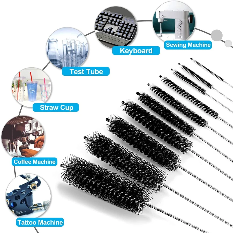 * 10PCS/set Stainless Steel Cleaner Brush Test Tube Bottle Straw Washing Cleaning Tool.