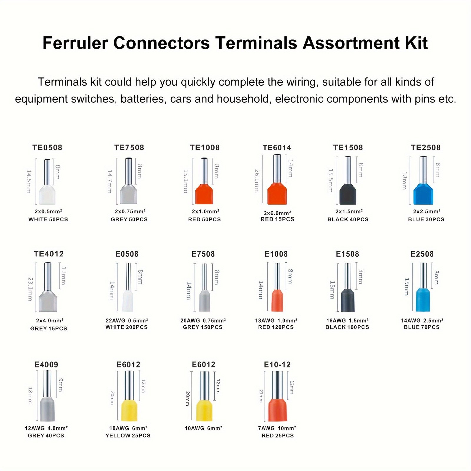 1pc Self-adjusting Ratcheting Square Crimping Tool For Awg28-5 (0.08-16mm). Wire Crimper With 1000pcs Tube Terminals Set. Electrical Wire Connector Tools Kit. 8.5 Inchu002F207mm
