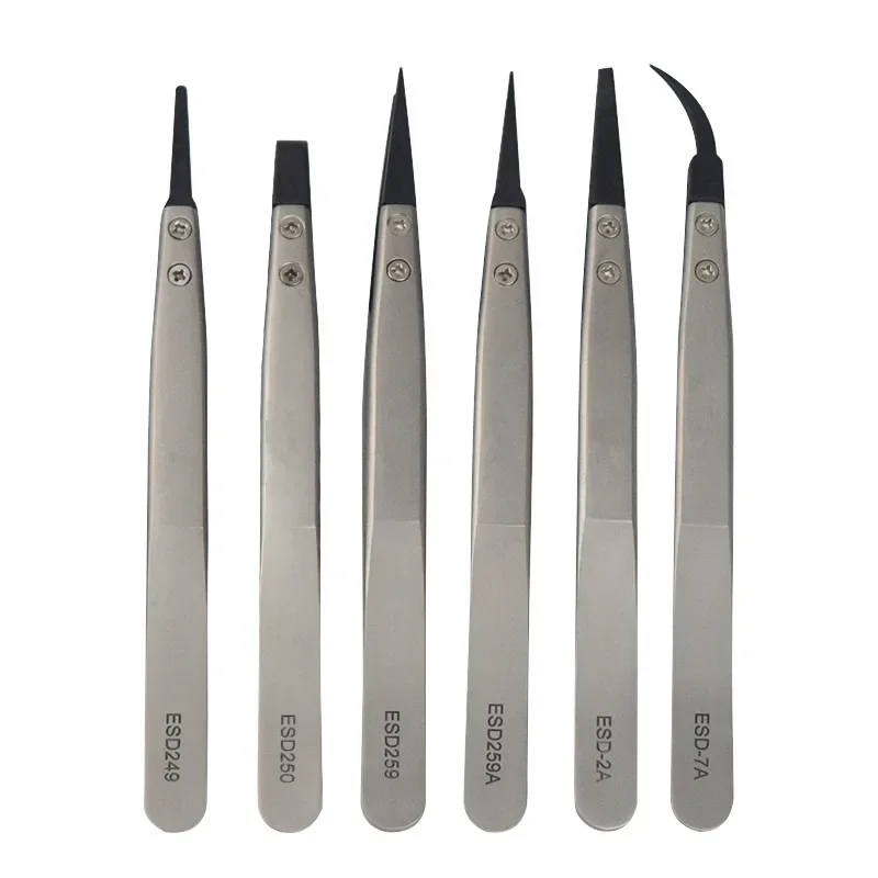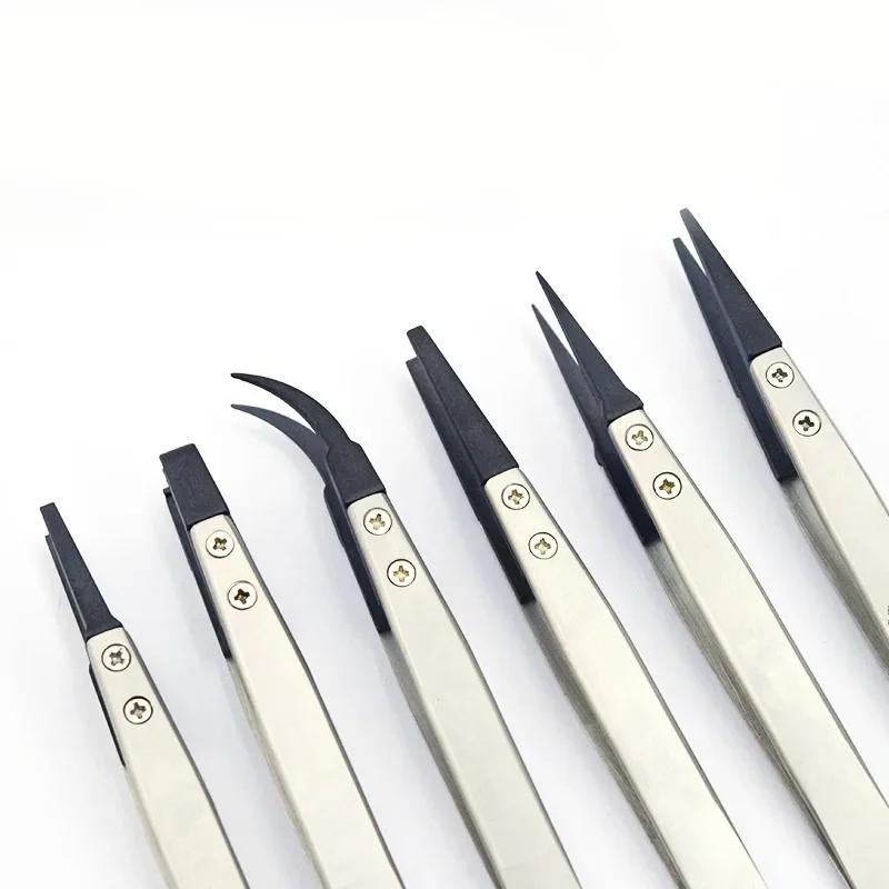 The plastic head of the interchangeable head tweezers has excellent anti-static performance due to the filling of carbon fiber, which increases the hardness and wear resistance of the interchangeable head tweezers. It is lightweight and effective in discharging charges, and will not experience precipitation.