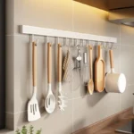 81 reviews for 20/30/40/50cm White Kitchen Hook Holder No Punch Wall Hanging Rod Space Aluminum Row Hook Spatula Spoon Shovel Storage Rack