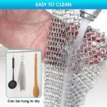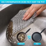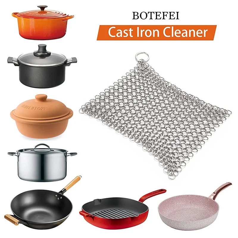 — Food grade iron casting cleaner chain made of 316 stainless steel, durable and not rust. Each ring on a cast iron shaver is extremely durable and has a smooth surface that easily removes grime from cookware.