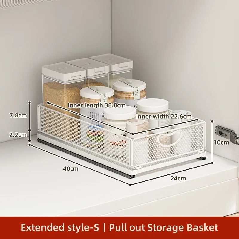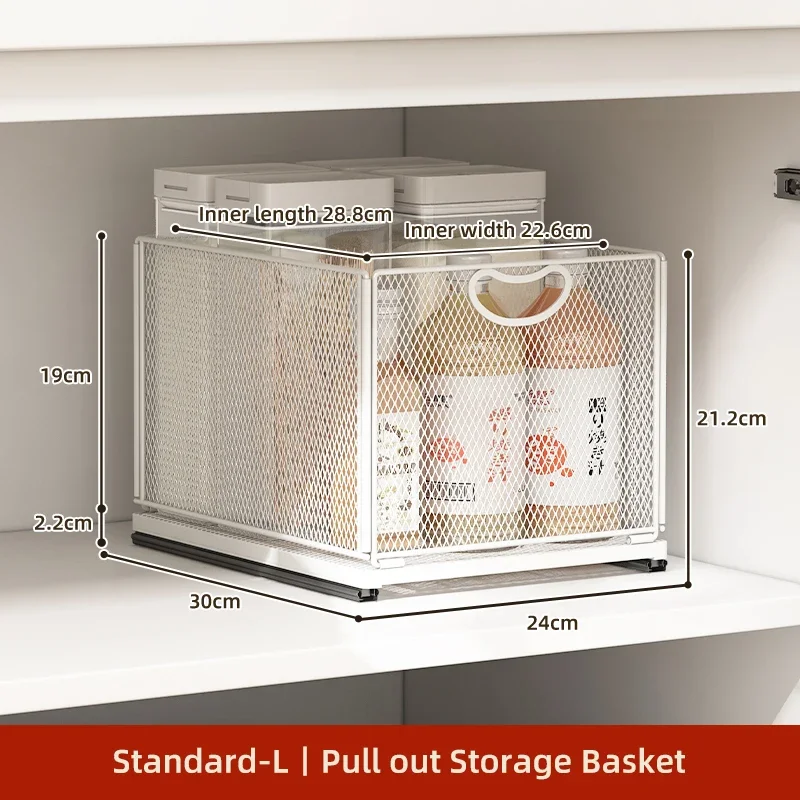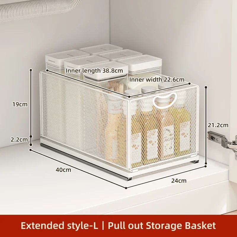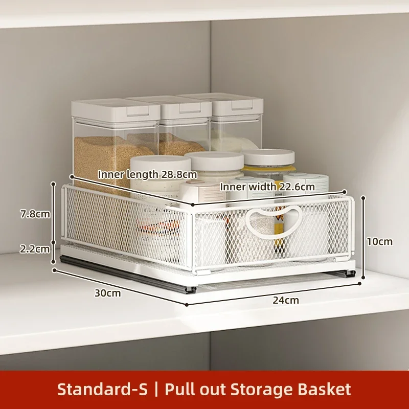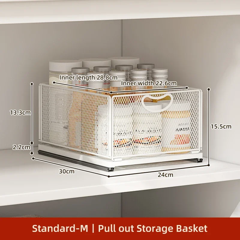 Kitchen Storage Drawer Cabinet Under Sink Pull Out Basket with Rail Space-saving Bottle Can Jar Organizer Household Supplies