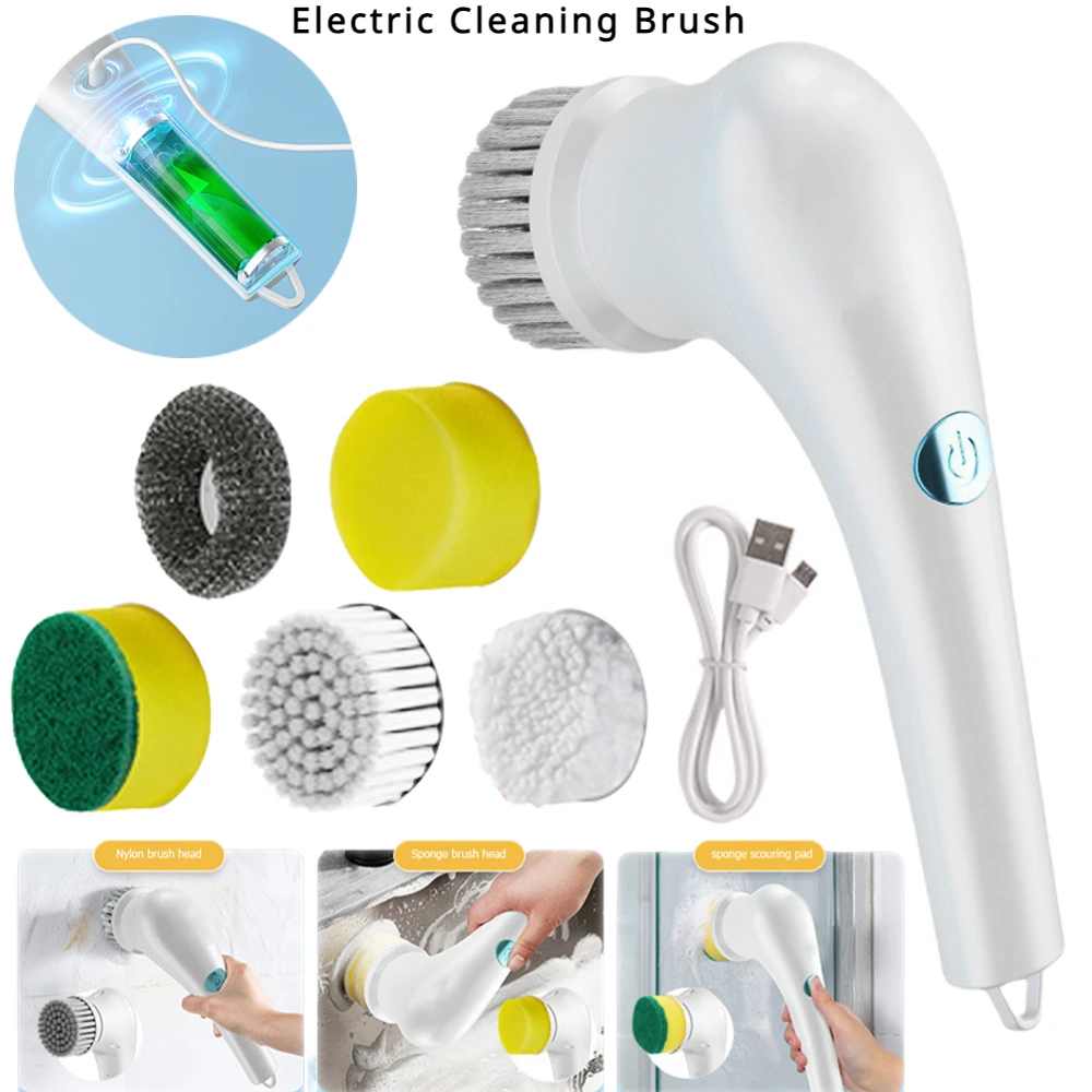 5 In 1 Multifunctional Electric Spin Scrubber Rechargeable Handheld Cleaning Brush with 5 Brush Heads Waterproof Cleaning Tool for Wall Dish Tile Tub Floor Features: 1.Enhanced Power Technology: Equipped with a high-torque deceleration motor, this handheld kitchen cleaning brush delivers superior scrubbing power to tackle the toughest of stains. Its robust motor ensures efficient cleaning across various surfaces without losing steam. 2.Versatile Brush Heads: Our multifunctional electric cleaning brush comes with five interchangeable heads, designed to meet 90% of cleaning needs, including dishwashing, pot scrubbing, kitchen sanitation, bathroom detailing, and corner cleaning, making it a go-to tool for every cleaning task in your home. 3.Multi-Scene Use: Specifically engineered for versatility, each brush head serves an optimal purpose for different cleaning scenarios. Use it in the kitchen, bathroom, or any hard-to-reach areas to effortlessly maintain cleanliness, driving up customer value and encouraging repeat purchases. 4.Cordless Convenience: Say goodbye to tangled wires and restricted movement. This fully waterproof electric brush sets operates wirelessly, offering the freedom to clean anywhere without being tethered to a power outlet. Its user-friendly design makes for a quick and easy cleaning experience. 5.Waterproof and Durable: Designed for longevity and ease of use, the charging cleaning brush is entirely waterproof, suitable for use in wet conditions without the risk of damage. Its durability and convenience of use ensure that it is a practical addition to any cleaning regimen, providing long-lasting, hassle-free service. Specification: Note: 1* Host 1* Charging Cable 1*Flannel Scouring Pad 1* Steel Ball Brush Head 1*Nylon Brush Head 1* Sponge Brush Head 1*Sponge ![]()