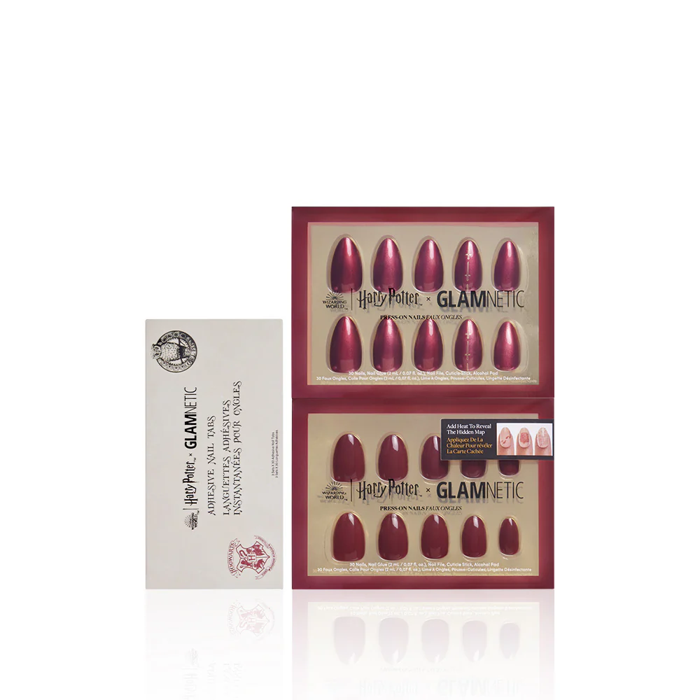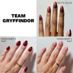 - Gryffindor™: a short almond style in a rich, luxurious scarlet hue with a chrome finish and gold graphics