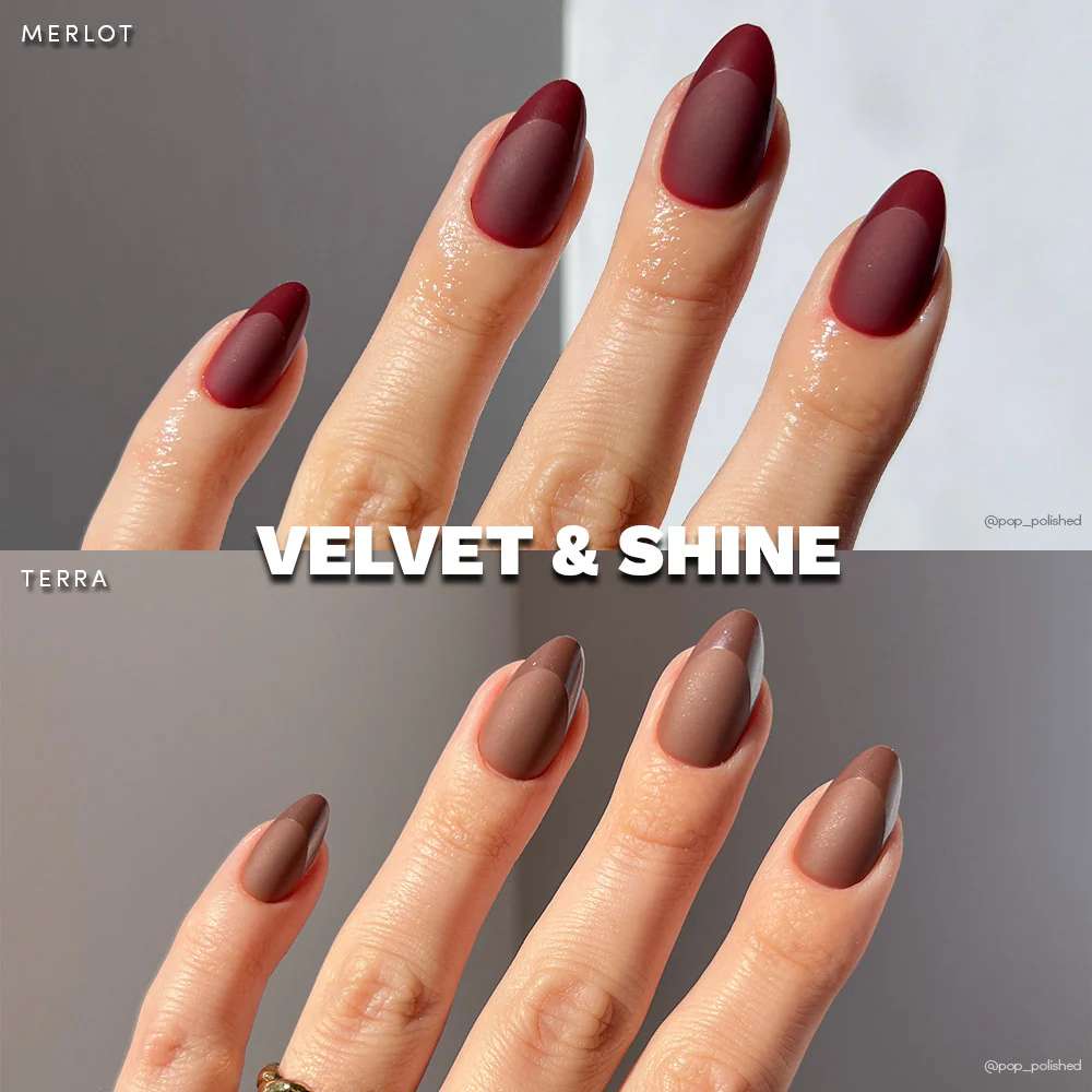 Merlot: a matte finish with a glossy french-tip design in the most stunning dark red-wine hue